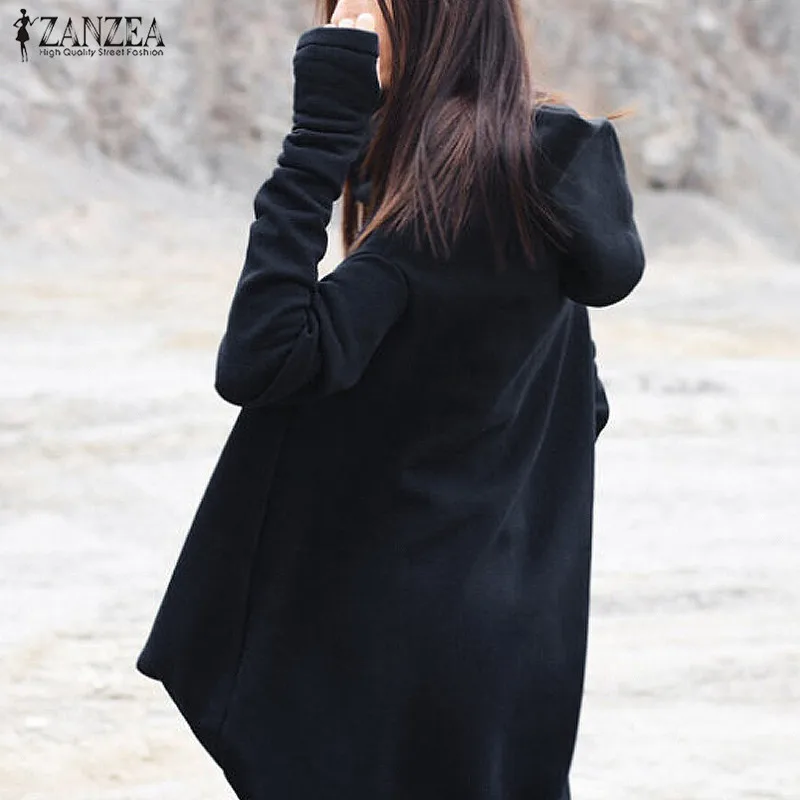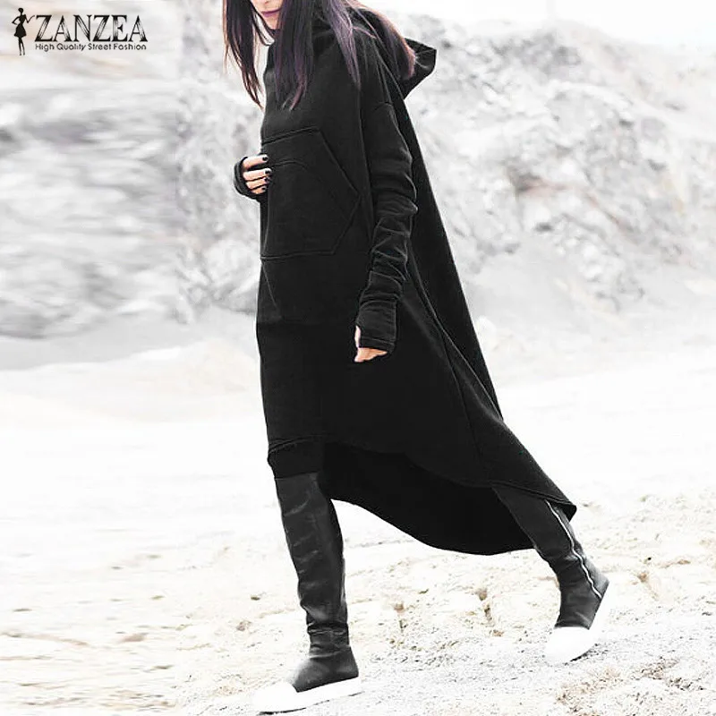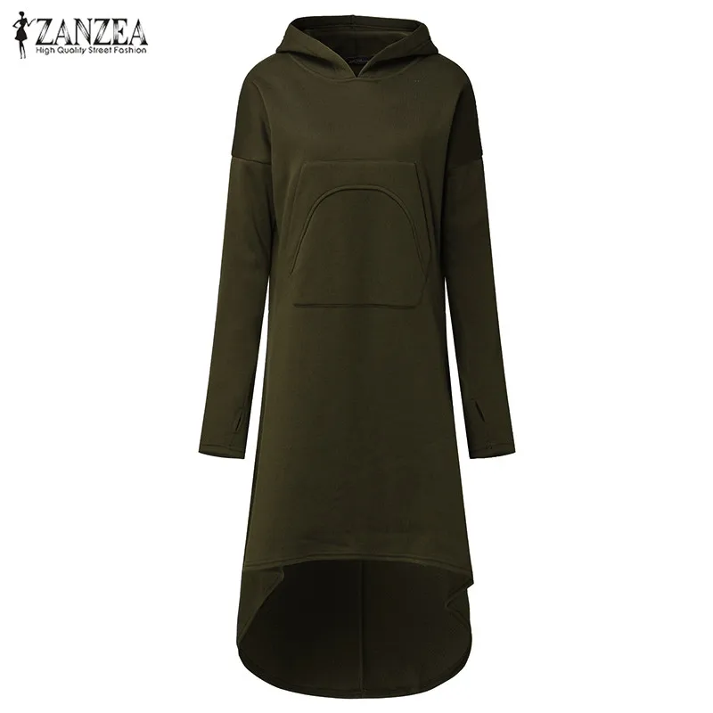 Beste Koop 2018 ZANZEA Winter Hooded Lange Mouwen Fleece Vrouwen Hoodies Pullover Vestido Casual Zakken Party Lange Sweatshirt Jurk Plus Size Goedkoop