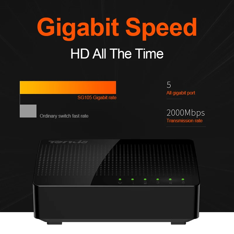 Beste Koop Tenda SG105 Ethernet Switchs 5 Gigabit Port Desktop Switch 10 100 1000 Mbps Rj45 poort Soho Schakelaar 16 Gbps LAN Hub plug en play Goedkoop.
