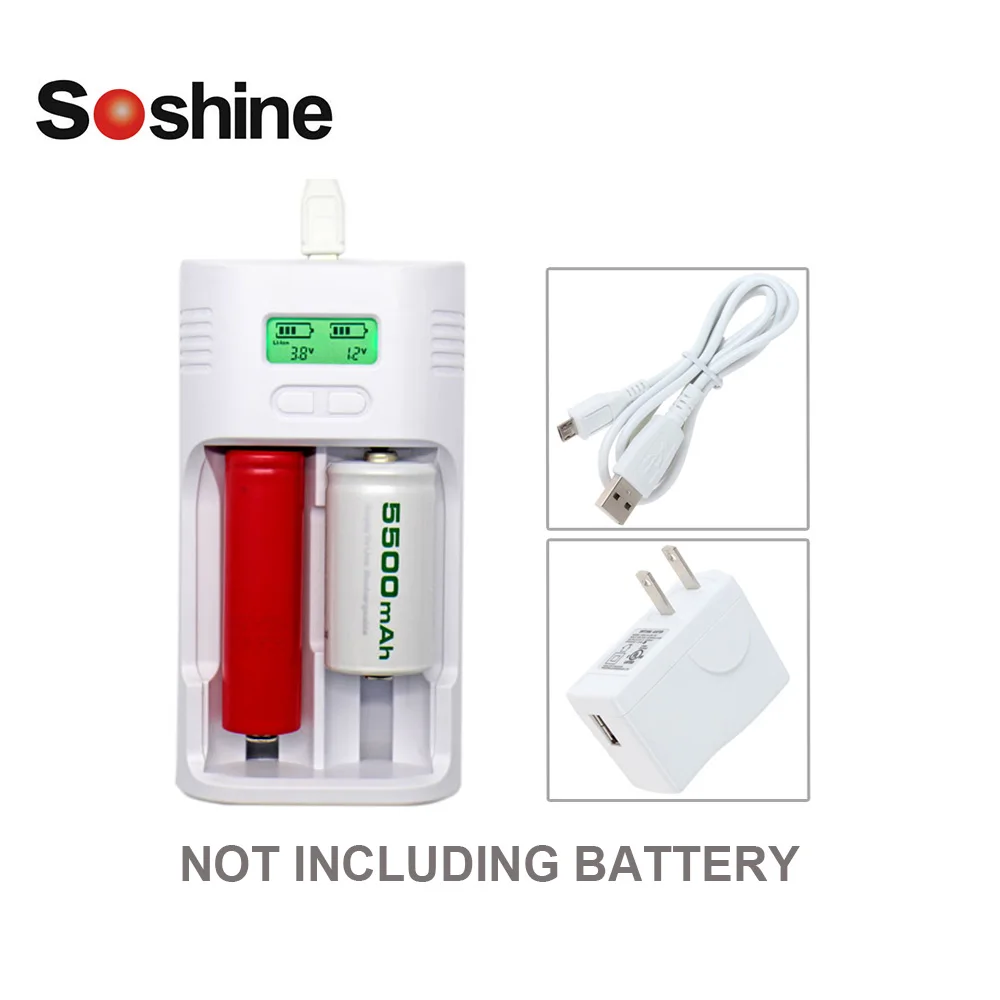 Beste Kopen Soshine T2 LCD Li Ion Ni Mh LiFePO4 Batterij Lader met US Plug voor 26650 18650 14500 16340 RCR123 AA AAA Batterij Goedkoop