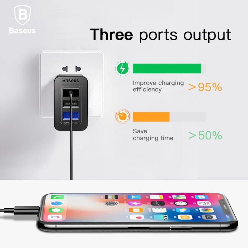 Kopen Goedkoop BASEUS Merk EU UK US 3 in 1 Gratis om Schakelaar 3 USB Universele Reislader Muur Lading Snelle Adapter plug voor iPhone X 8 Samsung Online